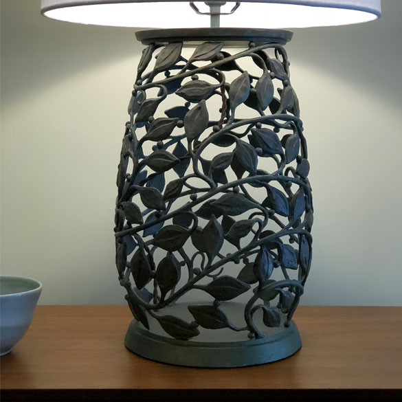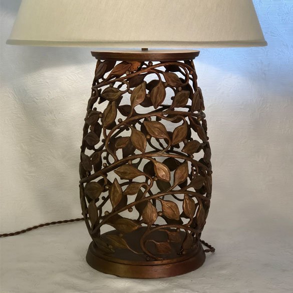 Bronze lamp base. Shade included.